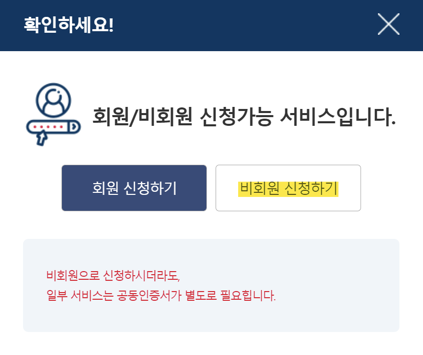 2. 클릭하면 아래와 같은 화면이 나오는데요. 신청방법, 수수료, 구비서류, 처리기간 등에 대한 정보가 나옵니다. 다 읽어보셨으면 <발급> 버튼을 눌려주세요. 주민등록등본의 경우 로그인 없이도 신청이 가능해서 회원이시라면 회원 신청하기, 비회원이시면 비회원 신청하기를 클릭합니다.