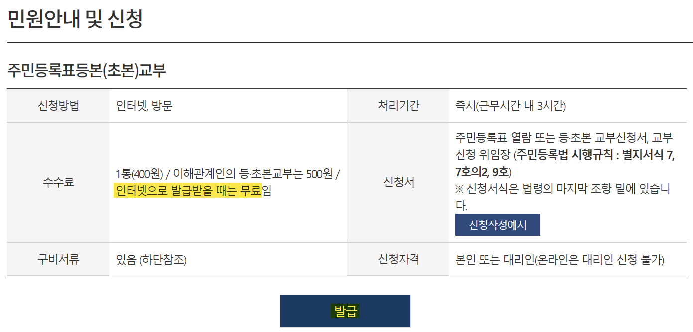 주민등록등본 발급