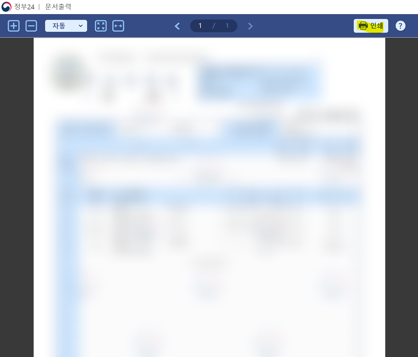 5. 이상 인증까지 완료하면 마이서비스-서비스 신청내역에서 문서출력이 가능하며, pdf로도 내려받기를 할 수 있습니다.