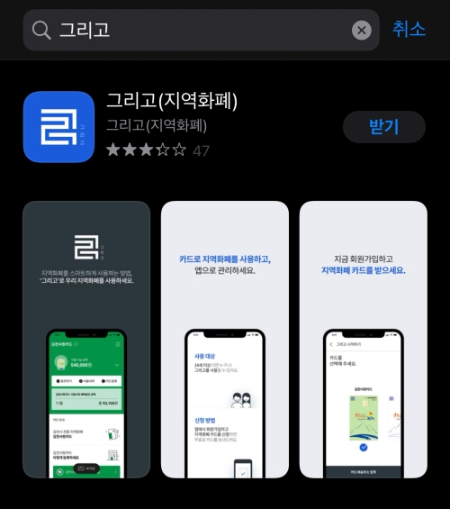 모바일을 이용하여 신청하는 경우에는 스마트폰 플레이스토어 또는 앱스토어에서 [그리고]를 검색하셔서 설치 후 신청하면 됩니다.