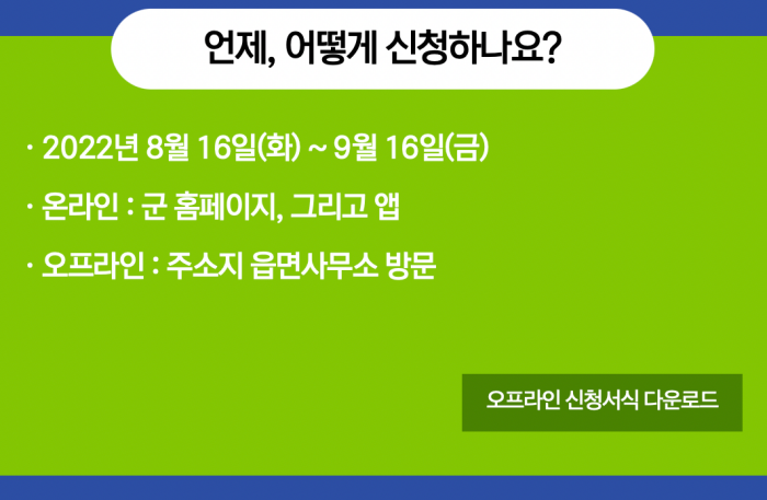 ※ 지급 제외 대상 : 2022년 6월 1일 기준일부터 신청일까지 주민등록 상 주소지가 영광군으로 되어있지 않은 사람