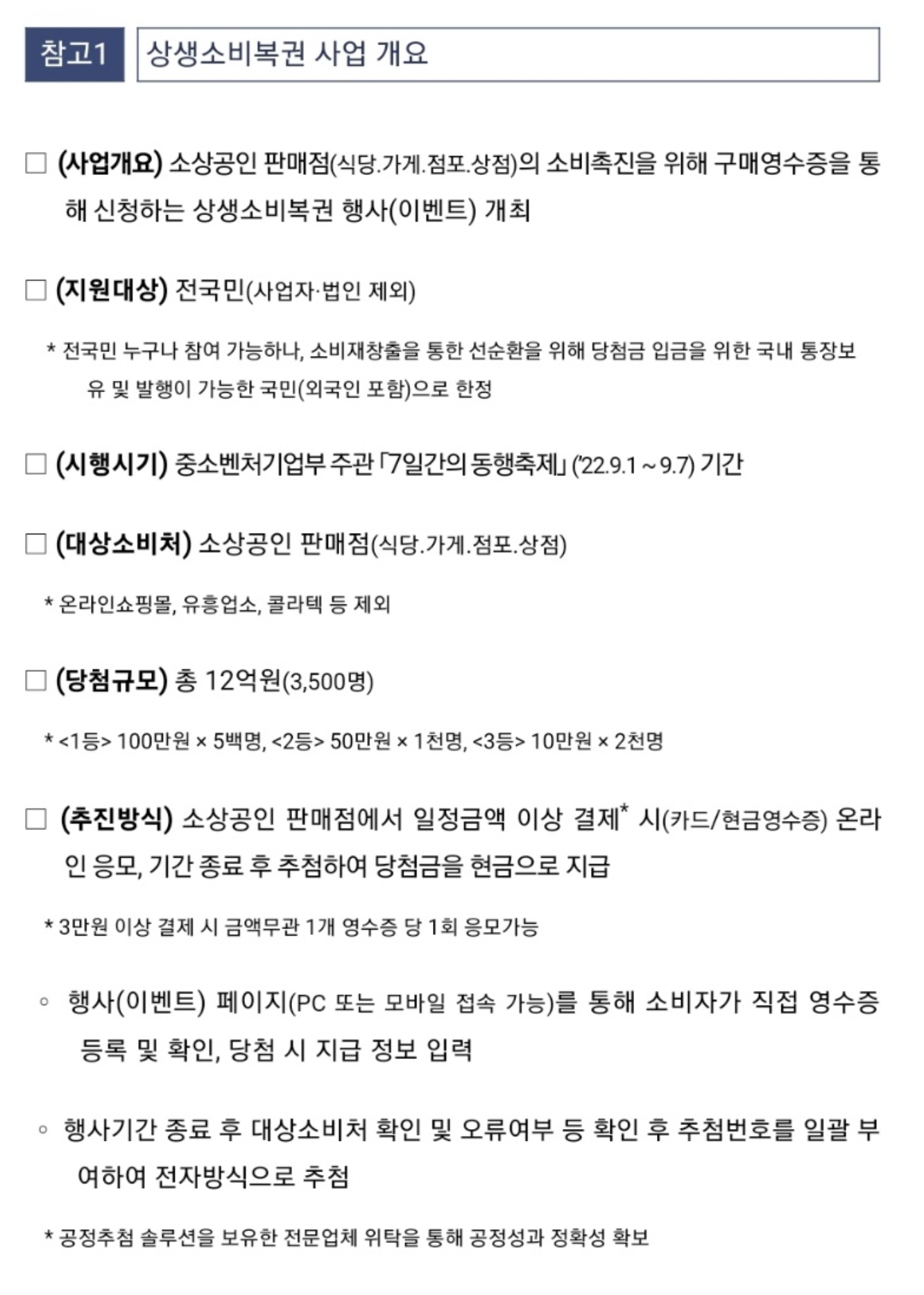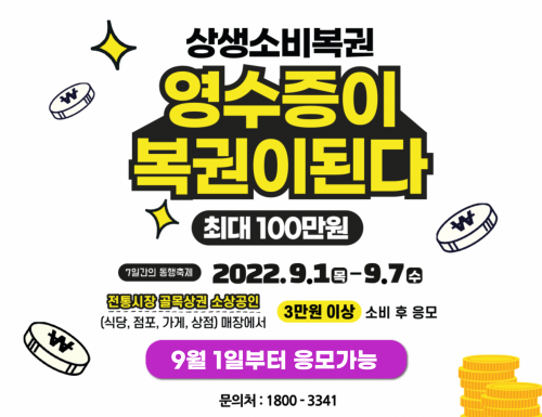 - 상생소비복권 응모 기간 : 2022년 9월 1일 (목) ~ 9월 7일 (수)