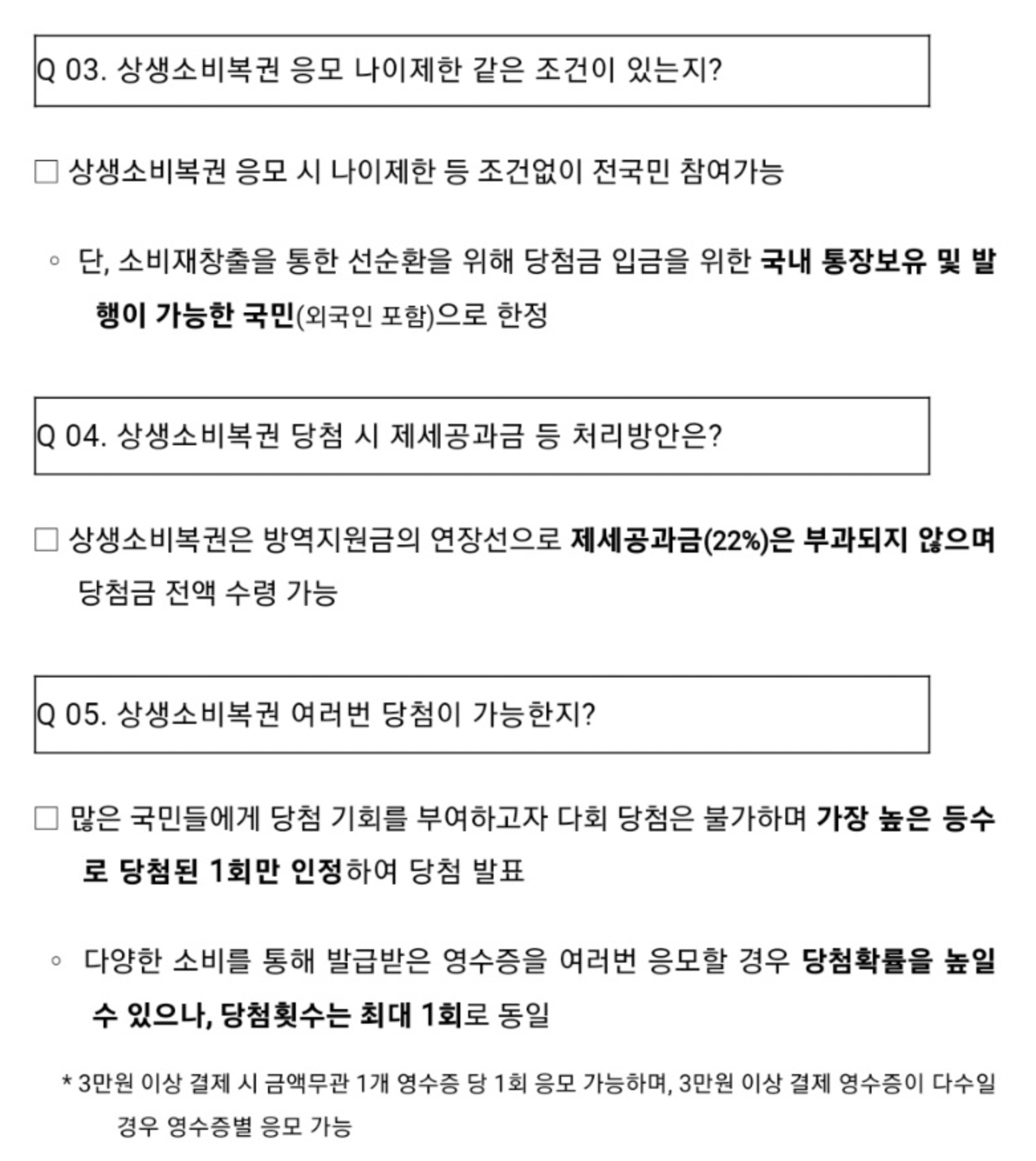 - 상생소비복권 추첨일 : 9월 3째주 (전자추첨 방식)