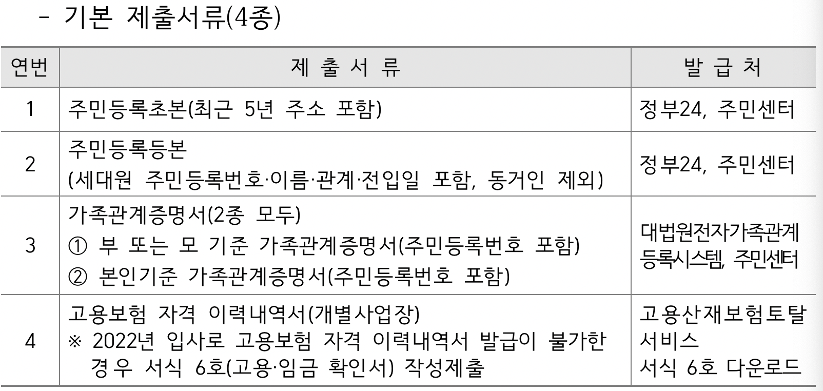 모든 제출서류는 2022년 5월 23일 이후의 발급분만 유효합니다.