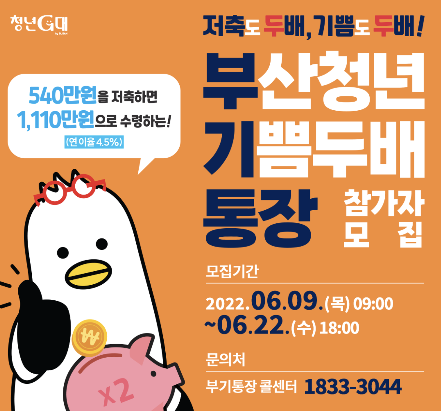 1. 부산청년 기쁨두배통장 콜센터 : 1833-3044